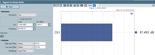 Test indicator 2: what is the signal-to-noise ratio(SNR)? That is, the ratio of the voltage of the output signal of the amplifier to the noise voltage output at the same time. Generally speaking, the higher the SNR of the audio, the less noise mixed in the signal and the "cleaner" the sound. In a quiet environment, there will be obvious noise when the sound is lower than 70dB. Watching movies at home also needs to pay attention to "immersion", so in order to have a better sound experience, when choosing speakers, try to choose products with a SNR of 75dB or more. An excellent TV audio system has a higher SNR. The SNR of the subwoofer of the Xiaoheiba set HA860A is 97dB, and the SNR of the soundbar is 86.12dB. This result is enough to reassure.
