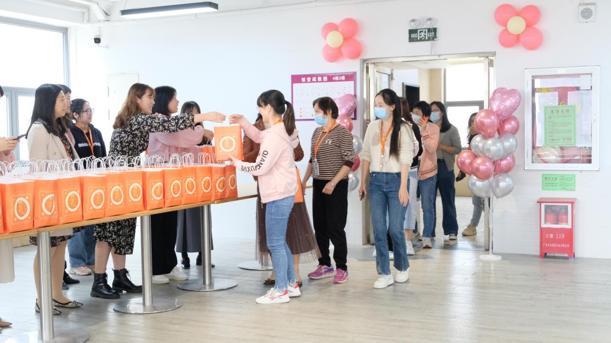 At 12:00pm, the femal employees of GIEC entered the venue one after another. They lined up in an orderly manner and received heart-warming festival gifts. Everyone smiled and felt the joy of the festival together. The scene was full of laughter.
