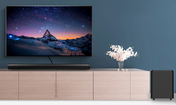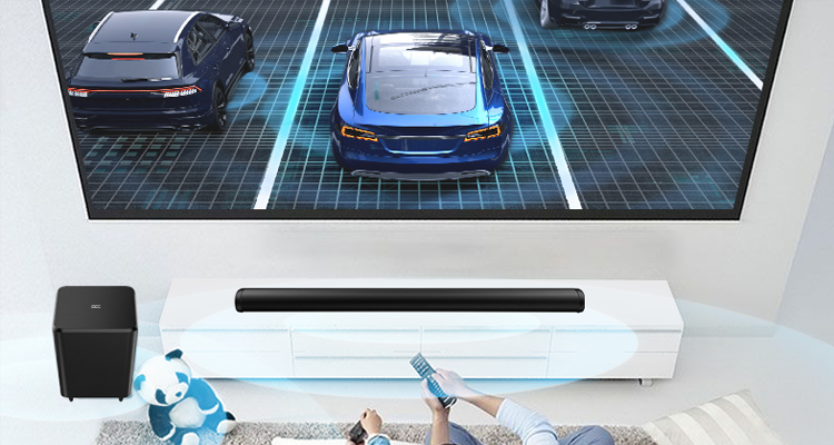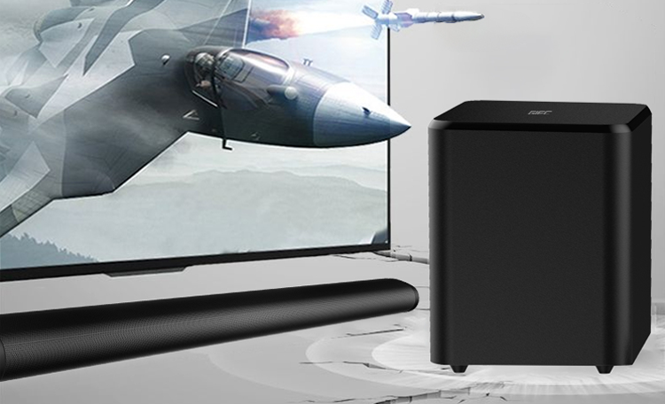 T130 Pro is one of mainstream construction methods to have an entry-level home theater at present. It is composed of an 8-inch wireless wooden subwoofer and a metal integrated bar speaker. The host Soundbar and subwoofer adopt U-band wireless frequency connection, which is fast and can be connected immediately without any adjustment. It has a large acceptance range, strong anti-interference ability, stable signal, and not easy to crosstalk or drop frequency.