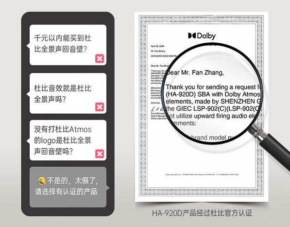 这不仅需要硬件性能达标,还需要软件处理算法与杜比技术的高度集成。高门槛的认证标准,让920D的音效和品质更值得信赖!